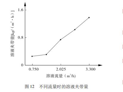 液體空調(diào)在與不同工況下溫度差異比較大為此進(jìn)行了不同溫度的下的系統(tǒng)壓降研究,另外溶液的夾帶也對(duì)被處理空氣的質(zhì)量有重要影響,試驗(yàn)結(jié)果如圖11~13所示。
